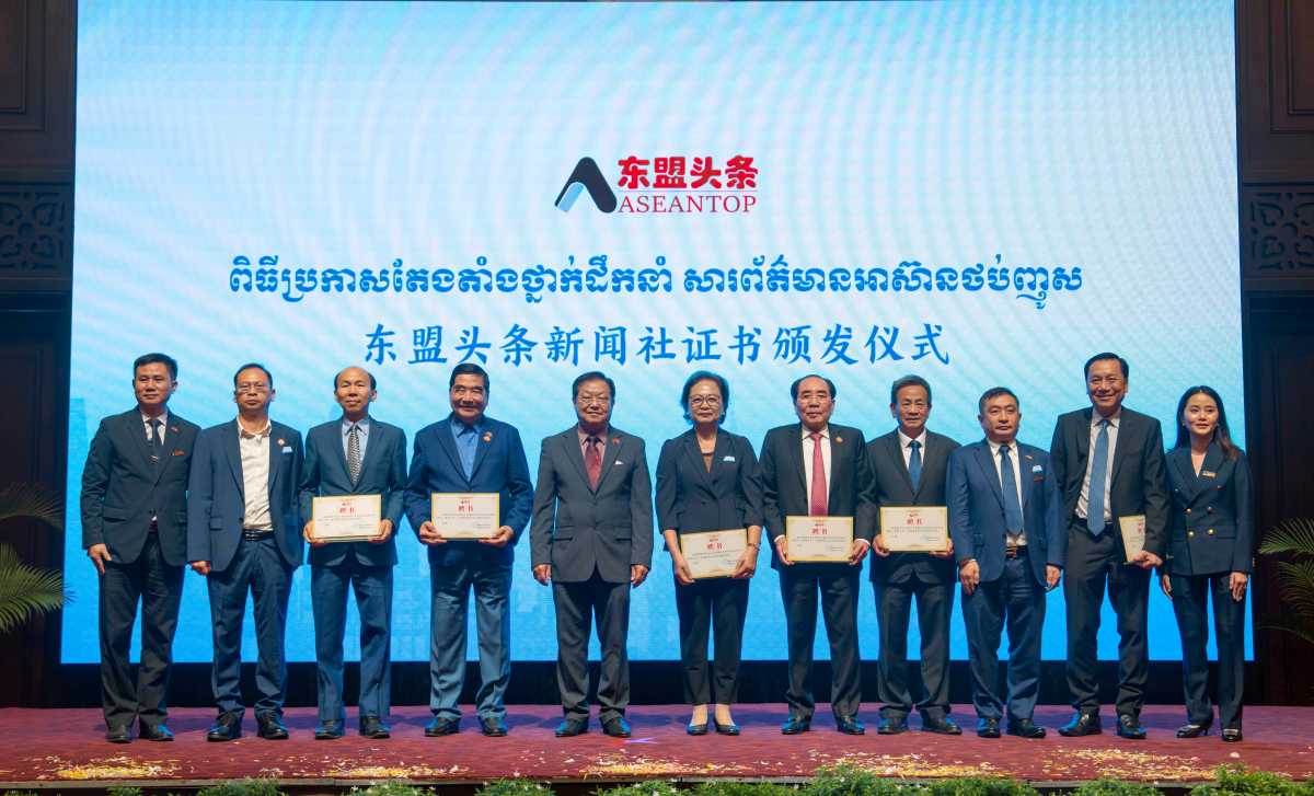 在此次中柬人文与经济交流对话会活动现场,还举行了东盟头条新闻社证书颁发仪式。柬埔寨新闻部国务秘书青廉向东盟头条新闻社荣誉社长黄瑞华、名誉社长李坤泰公爵以及高级战略顾问郑源来公爵、方灿成勋爵、郑棉发勋爵、苏文杰、黎松等人颁发证书。