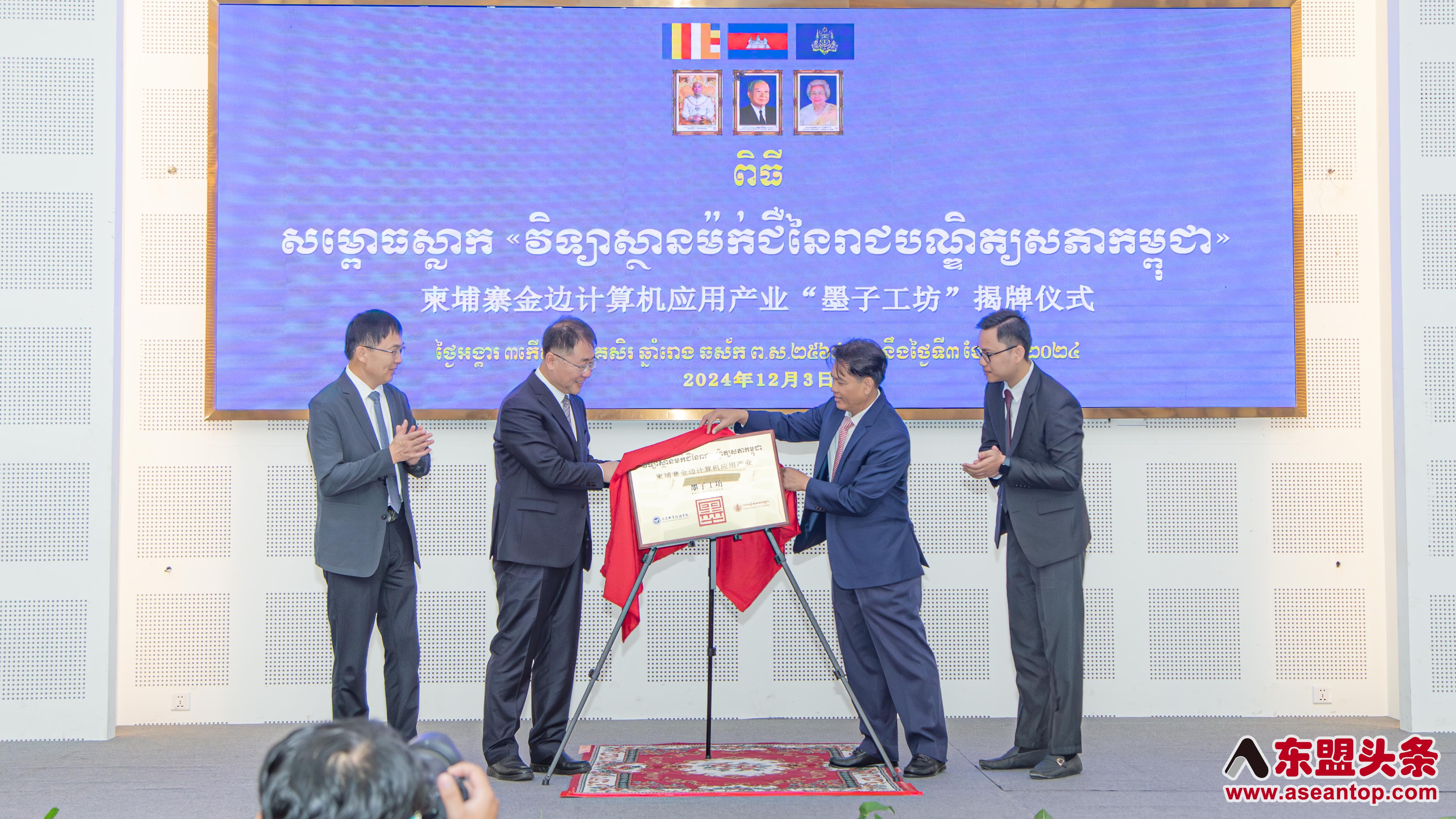 据悉,柬埔寨金边计算机应用产业“墨子工坊”揭牌仪式,在位于金边的柬埔寨皇家科学院高棉学者楼洞里萨湖厅隆重举办。柬埔寨皇家研究院院长宋独、大连职业技术学院党委书记杨跃权、大连枫叶职业技术学院院长杨捷、苏商集团董事长包自勤,以及来自柬埔寨皇家科学院、大连职业技术学院、大连枫叶职业技术学院的师生等众多嘉宾出席活动。